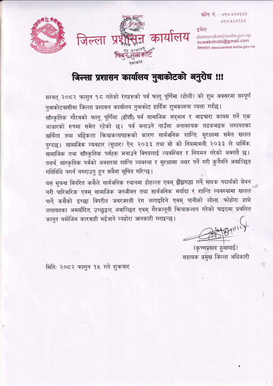 जिल्ला प्रशासन कार्यालय नुवाकोटको अनुरोध !!!