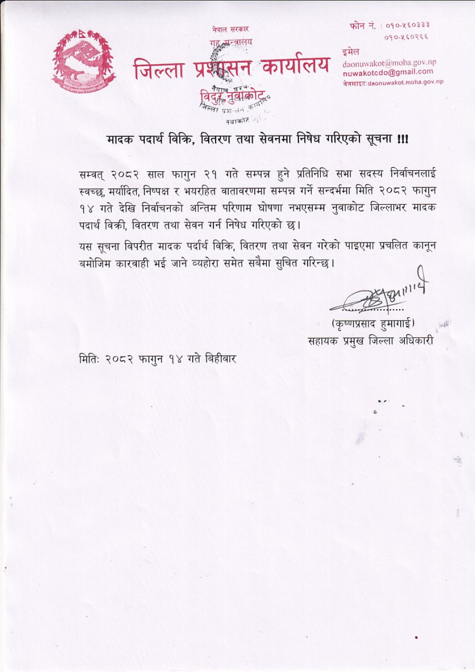 जिल्ला प्रशासन कार्यालय नुवाकोटको अनुरोध !!!