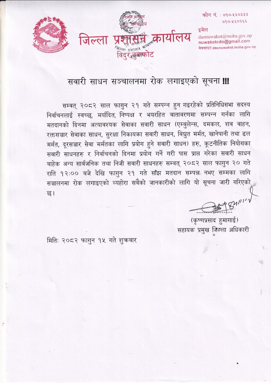 जिल्ला प्रशासन कार्यालय नुवाकोटको अनुरोध !!!