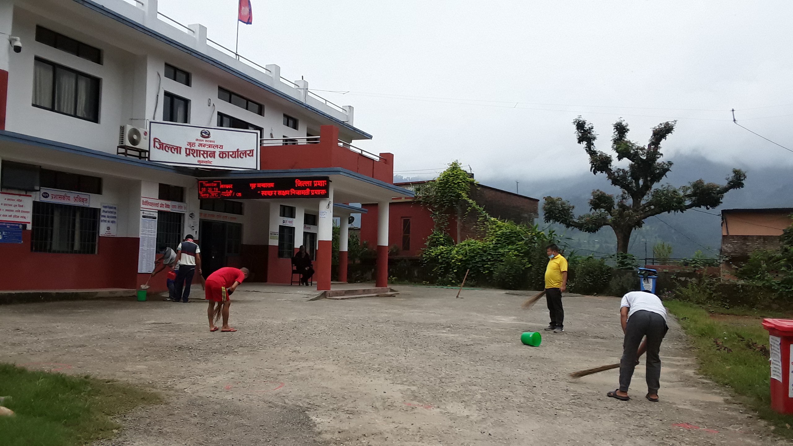 कार्यालयको रुपान्तरण गर्न कर्मचारीहरुले श्रमदान गर्दै